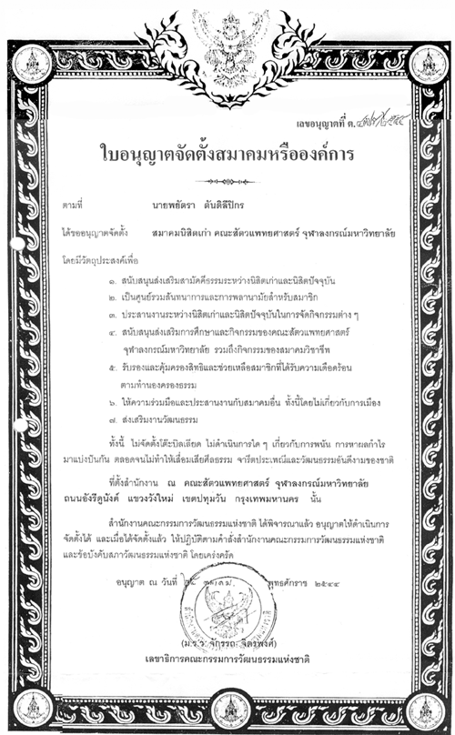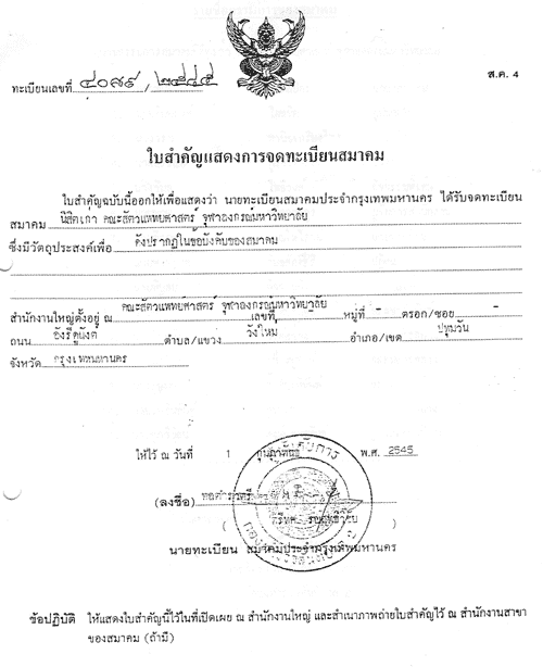 ใบทะเบียนสมาคมฯ